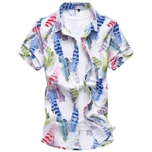 Plus Size Summer Printing Fashion Slim Fit Short Sleeve Dress Shirts for Men Sale