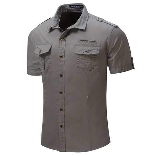 Outdoor Washed Sports Cargo Band Collar Dress Shirts for Men Sale