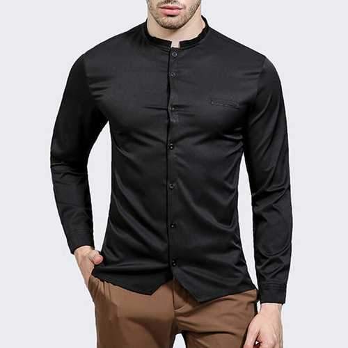 Stylish Casual Stand Collar Button Up Designer Shirts for Men Sale