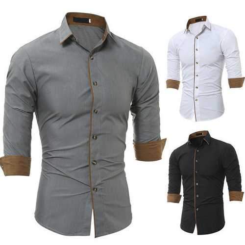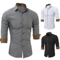 Mens Solid Color Slim Designer Shirts - WHITE / 2XL