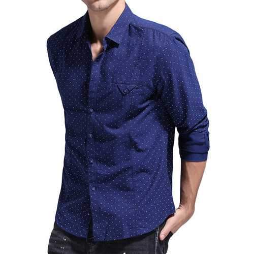 Dots Printing Slim Shirts - LIGHT BLUE / L