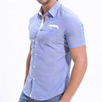 Chest Pocket Designer Shirts - BLUE / L
