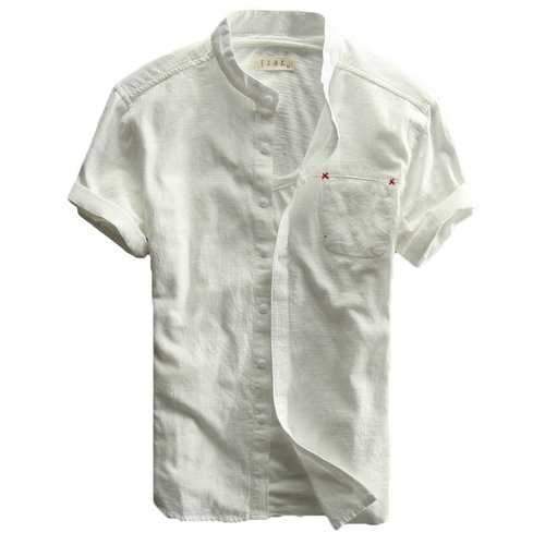 Slim Chest Pocket Linen Shirt - GREEN / L