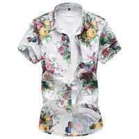 Flower Printing Hawaiian Shirts - WHITE / XL