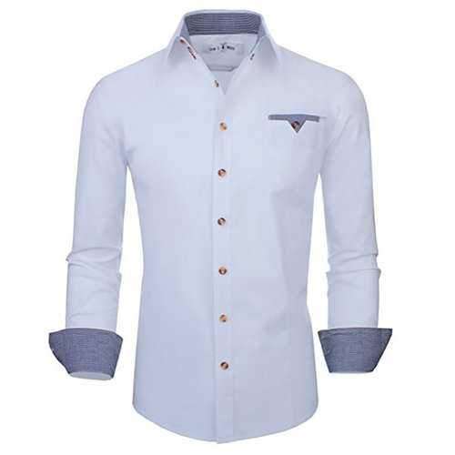Plaid Solid Color Slim Dress Shirts - WHITE / L