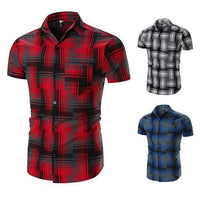 Casual Pocket Plaid Design Short Sleeve Shirts Sale