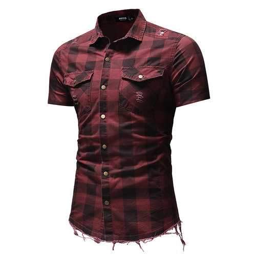 Casual Ripped Plaid Pocket Burr Designer Shirts Sale