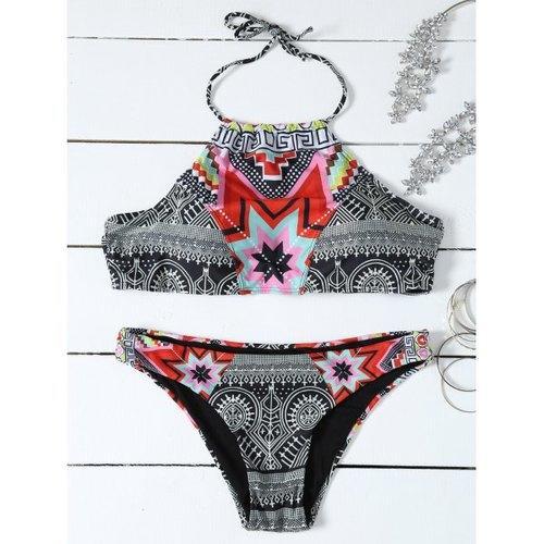 Halter High Neck Geometrical Print Boho Bikini Set - Black M Sale