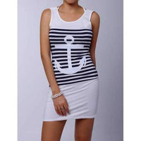 Casual Scoop Collar Sleeveless Striped Anchor Pattern Women's Dress - White M - WHITE / M
