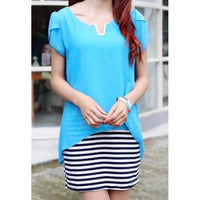 Casual Scoop Neck Stripe Spliced Short Sleeve Dress For Women - Azure S Sale