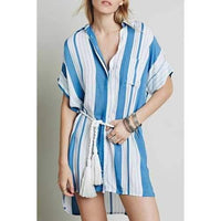 Stylish White Blue Batwing Sleeve Striped High Low Women's Dress - Blue And White S - BLUE/WHITE / S