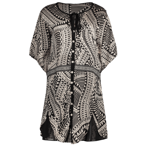 Button Up Geo Print Chiffon Dress - L - COLORMIX / L