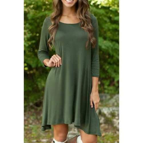 Casual Round Neck 3/4 Sleeve Irregular Hem Green Women's Dress - Army Green S Sale