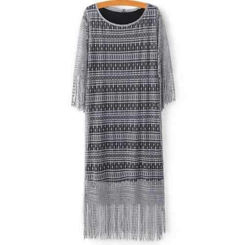 Fashion Scoop Neck Black Tank Top and Tassels Spliced Lace Dress Twinset For Women - Light Gray M Sale