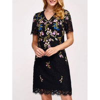 Flower Embroidered Wave Cut Sheath Lace Dress - Black Xl - BLACK / XL
