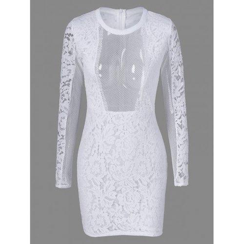 Tight Mesh See Through Sheer Lace Fitted Dress - White M Sale