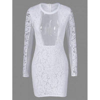Tight Mesh See Through Sheer Lace Fitted Dress - White M - WHITE / M