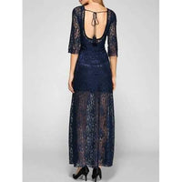 Backless Maxi Prom Long Lace Evening Dress - Navy Blue M Sale