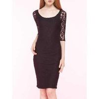 3/4 Sleeve Lace Bodycon Midi Dress - Black Xs Sale