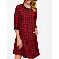 Checked Single-Breasted A-Line Dress - Red Xl Sale