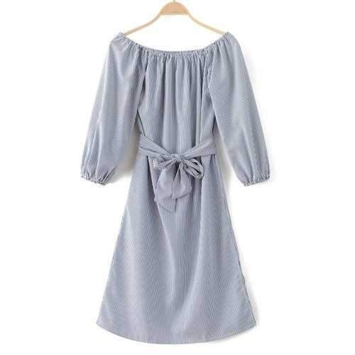 Slit Pinstripe Off The Shoulder Dress - Light Blue Xl Sale