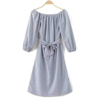 Slit Pinstripe Off The Shoulder Dress - Light Blue Xl - LIGHT BLUE / XL