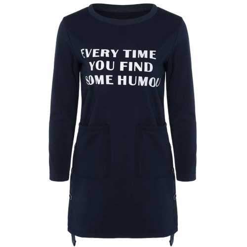 Letter Print High Low Pocket Dress - Purplish Blue 2xl - PURPLISH BLUE / 2XL