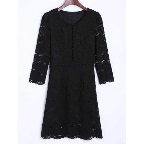 Hollow Out A Line Lace Dress - Black Xl - BLACK / XL