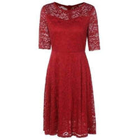 A Line Openwork Lace Midi Dress - Red S - RED / S