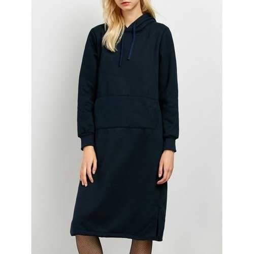Long Sleeves Hoodie Dress with Pocket - Purplish Blue M - PURPLISH BLUE / M