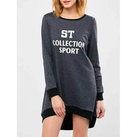 Sport Letter High Low Sweatshirt Dress - Gray M - GRAY / M