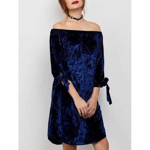 Off The Shoulder Casual Pleuche Dress - Blue L Sale