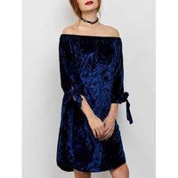 Off The Shoulder Casual Pleuche Dress - Blue L - BLUE / L