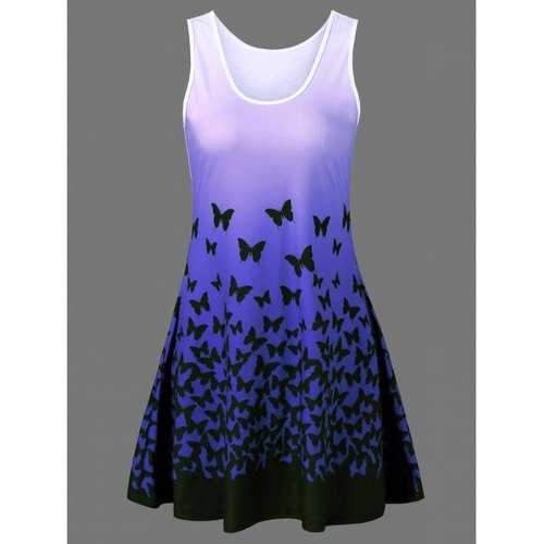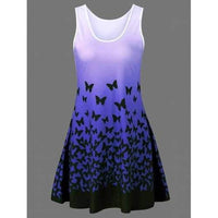 Butterfly Print Ombre Casual A Line Short Tank Dress - Blue Xl - BLUE / XL