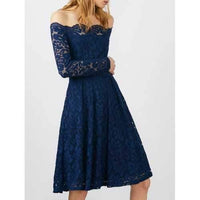 Off Shoulder Lace Long Sleeve Wedding Dress - Blue S Sale