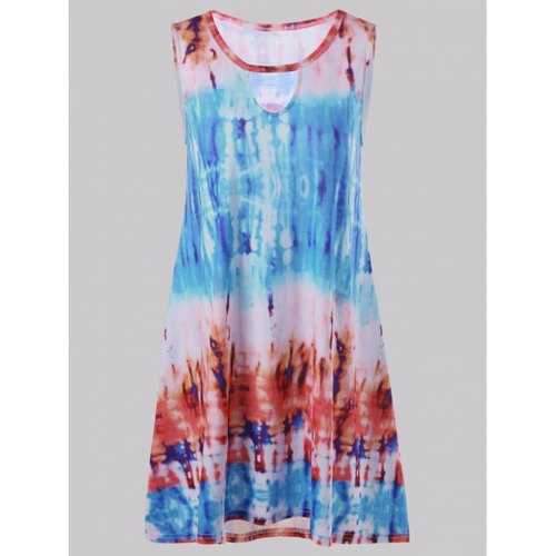 Sleeveless Keyhole Tie Dye Casual Spring Dress Female - Sky Blue L Sale