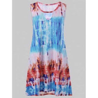 Sleeveless Keyhole Tie Dye Casual Spring Dress Female - Sky Blue L - SKY BLUE / L