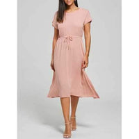Drawstring Short Sleeve Casual Midi Dress - Pale Pinkish Grey One Size Sale