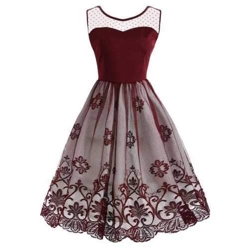 Mesh Lace Trim Backless Cocktail Dress - Red S Sale