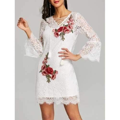 Embroidery Lace Dress with Cami Dress Twinset - White M Sale