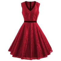 Retro A Line Lace Dress - Red S Sale