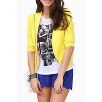 OL Style Open Front Long Sleeve Candy-Colored Irregular Hem Women's Blazer - Yellow L Sale