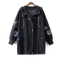 Hooded Patched Embroidered Trench Coat - Black One Size - BLACK / ONE SIZE