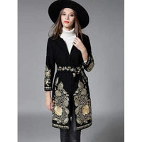 Slim Gold Thread Embroidered Long Wool Coat - Black L Sale