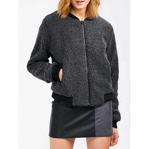 Faux Shearling Jacket With Pocket - Deep Gray M - DEEP GRAY / M