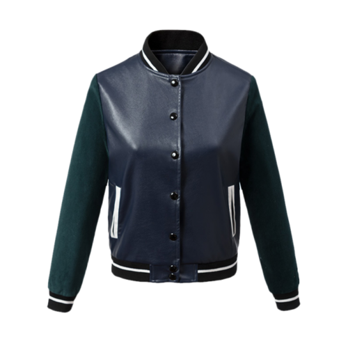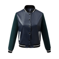 Contrast Sleeve PU Leather Baseball Jacket - Blue And Green M Sale