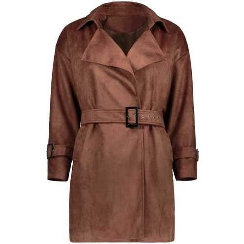 Sueded Trench Coat With Belt - Brown M - BROWN / M