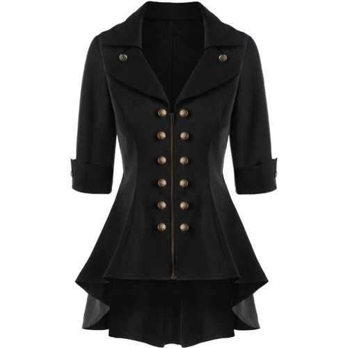 Double Breasted Short Flare Trench Coat - Black M Sale