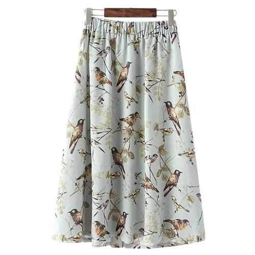 Stylish High Waisted Full Bird Print A Line Women's Skirt - White One Size(fit Size Xs To M) Sale