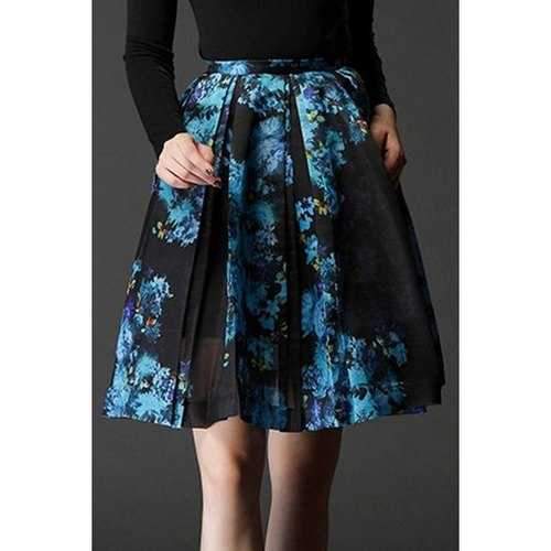Stylish High-Waisted Blue Print A-Line Women's Midi Skirt - Blue Xs Sale